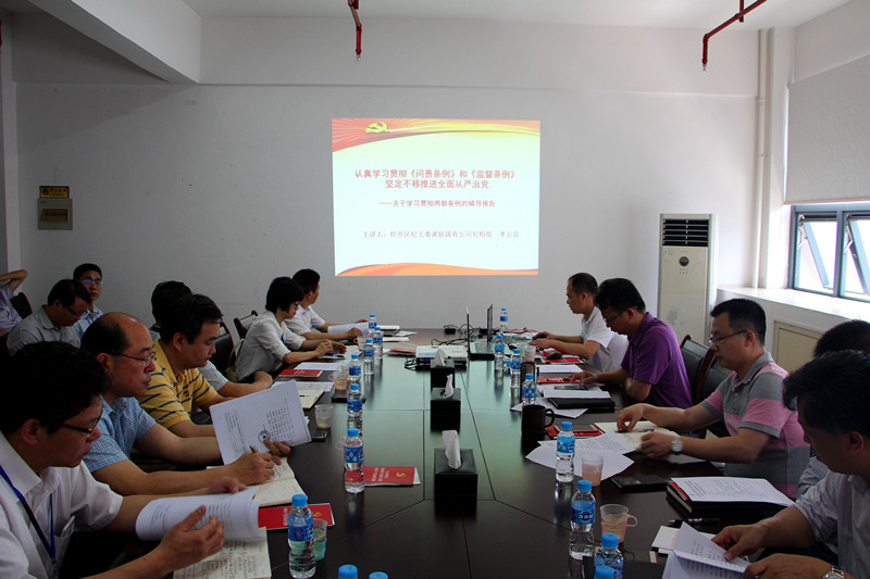 “兩部條例”宣講會后,進行了黨委中心組學習擴大會議,楊東董事長傳達學習何尚漢書記在經(jīng)開區(qū)主任辦公會上傳達學習貫徹全國“兩會”精神會議上的講話、《關于加強經(jīng)開區(qū)領導班子和干部隊伍建設專題會議紀要》精神,并結(jié)合綠港集團自身干部隊伍作風建設的案例進行了剖析點評。