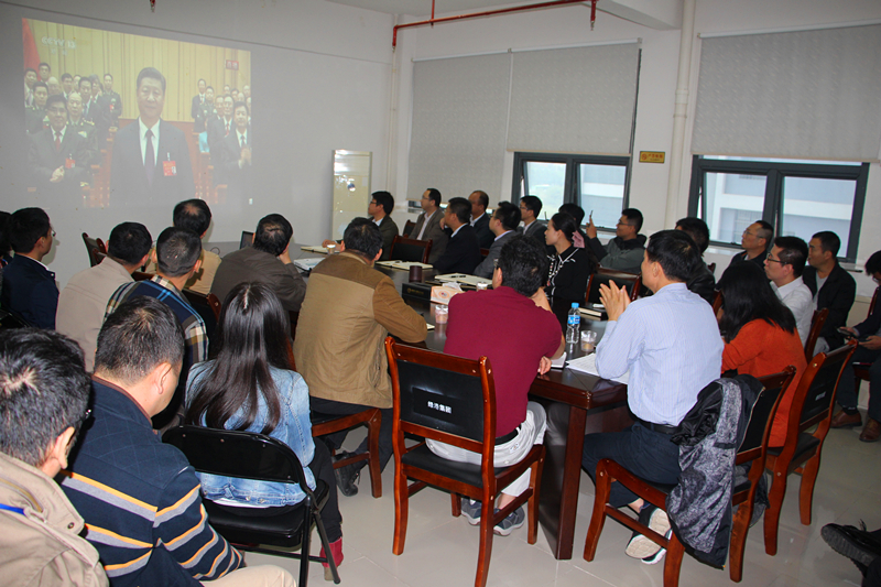 金秋十月,南國綠城花正艷。10月18日,黨的十九大在北京勝利開幕。當(dāng)日上午9時,綠港集團(tuán)黨委組織集團(tuán)公司領(lǐng)導(dǎo)班子全體成員、董事長助理、總經(jīng)理助理,各部門、各子公司負(fù)責(zé)人及公司全體黨員,在麗匯大廈415會議室集中收看中國共產(chǎn)黨第十九次全國代表大會開幕會直播盛況。全體與會人員懷著無比激動的心情,聚精會神,靜靜聆聽,認(rèn)真記錄,不時爆發(fā)出熱烈的掌聲!在長達(dá)三個半小時的收看過程中,整個會場始終保持莊嚴(yán)、肅穆、緊張、熱烈的良好氛圍。