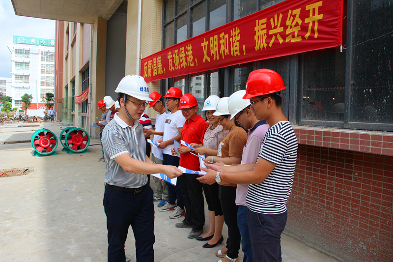7月26日上午,在瑞聲科技南寧產(chǎn)業(yè)園廠房裝修項目現(xiàn)場,綠港集團(tuán)黨委書記、董事長、總經(jīng)理龔國強(qiáng)向項目施工單位發(fā)放了《南寧綠港建設(shè)投資集團(tuán)有限公司工程建設(shè)廉政手冊》,施工單位向龔國強(qiáng)書記遞交了《工程建設(shè)項目廉潔自律承諾書》,綠港集團(tuán)黨委將廉政文化送進(jìn)工地,拓寬了廉政文化新陣地。