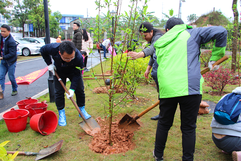 當(dāng)天,綠港集團(tuán)還舉行了植樹護(hù)綠活動(dòng)。在細(xì)雨紛飛中,家長(zhǎng)和孩子們一起動(dòng)手,分工協(xié)作。大家栽得認(rèn)真,干得賣力,揮鍬鏟土、挖坑、栽樹、蓋土、澆水,各個(gè)環(huán)節(jié)銜接有序,配合默契。整個(gè)植樹活動(dòng)現(xiàn)場(chǎng)熱火朝天,歡聲笑語(yǔ)不絕于耳。經(jīng)過一個(gè)多小時(shí)的揮汗奮戰(zhàn),上百棵小樹苗整齊的“站”在了綠港·國(guó)際中心桃樹林中。放眼望去,樹苗迎風(fēng)挺立、搖曳生姿,大家看著這一片自己親手種下的樹苗,無不露出幸福的笑容,紛紛與小樹苗合影。綠港集團(tuán)下屬榮鑫公司副總經(jīng)理唐欽月表示:“植樹造林是一項(xiàng)利于當(dāng)代、造福子孫的偉大工程。綠港集團(tuán)成立五年來,每年都積極組織員工開展義務(wù)植樹造林活動(dòng)。今天我們帶上孩子一起參加義務(wù)植樹活動(dòng),不僅增強(qiáng)了職工們生態(tài)環(huán)境保護(hù)的責(zé)任感,也給孩子們樹立了關(guān)心、愛護(hù)以及主動(dòng)參與家園建設(shè)的意識(shí)和榜樣。”